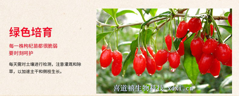 枸杞產(chǎn)業(yè)為喜道禧(寧夏)生物科技有限公司的百年事業(yè),喜道禧枸杞及茶葉等上品養(yǎng)生品來(lái)自中國(guó)寧夏核心產(chǎn)業(yè)帶,喜道禧好枸杞,貴在品質(zhì),喜道禧圣品枸杞服務(wù)于大眾健康。