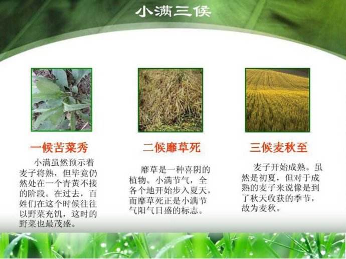 這個(gè)時(shí)節(jié),中國(guó)北方地區(qū)夏熟作物籽粒逐漸飽滿(mǎn),但還沒(méi)有成熟,早稻開(kāi)始結(jié)穗,在禾稻上始見(jiàn)一粒粒飽滿(mǎn)的谷實(shí),南方卻已進(jìn)入夏收夏種季節(jié)。