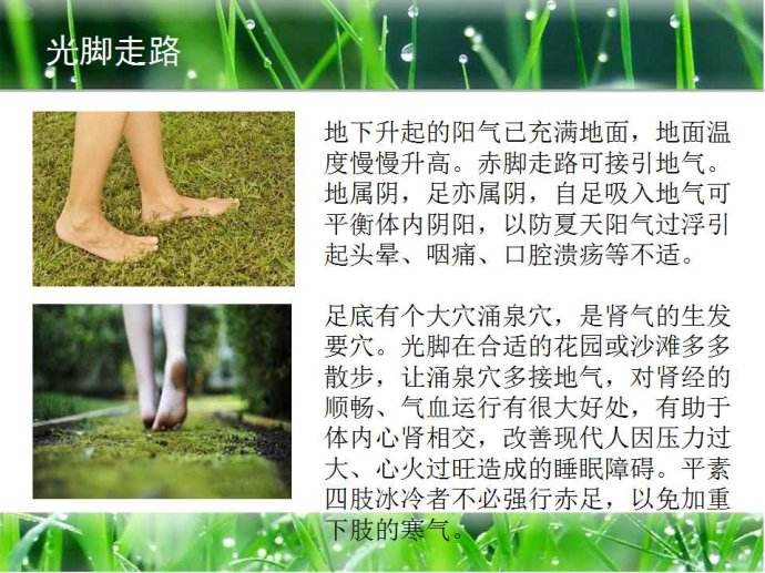 ▲生活起居規(guī)律,適量戶(hù)外運(yùn)動(dòng),北方宜晨練,南方健身房。既可以緩解精神壓力,又可以促進(jìn)食物的消化吸收,防止內(nèi)熱的產(chǎn)生和熱濕轉(zhuǎn)化為寒濕癥。