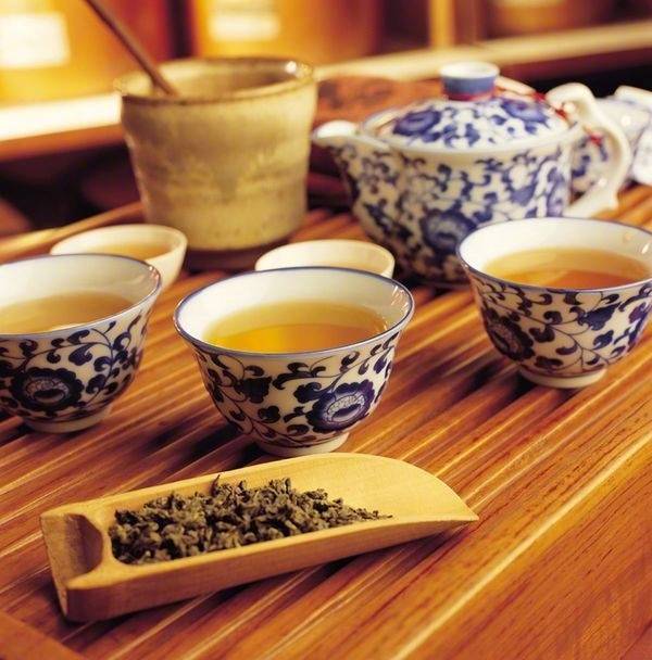 三、青茶(烏龍茶):鮮葉→曬青(萎調(diào))→做青(搖青)→殺青→揉捻→干燥。