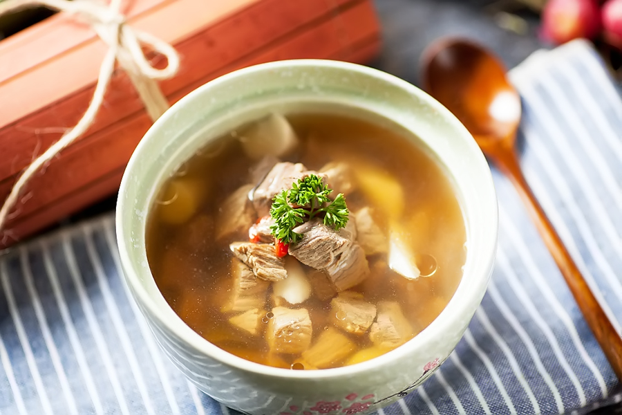 立冬開始,寒冷氣候影響人體的內(nèi)分泌系統(tǒng),增加肌體的御寒能力,這樣造成人體熱量散失過多。因此,立冬時(shí)節(jié)的營養(yǎng)以增加熱能為主。在寒冷的天氣,喝一碗熱氣騰騰的羊肉湯,絕對(duì)是一種享受。羊肉中含有大量的脂肪和蛋白質(zhì)以及豐富的熱量,御寒效果極佳。