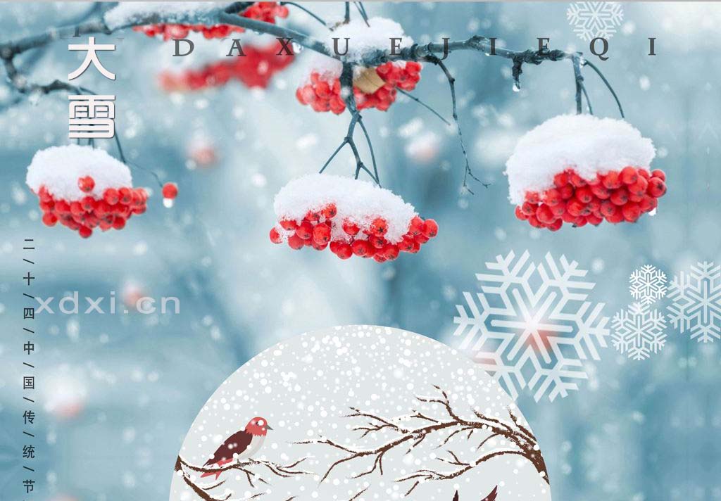 大雪節(jié)氣,通常在每年的12月7日(個(gè)別年份為6或8日)。太陽黃經(jīng)達(dá)255度時(shí)至大雪。大雪,雪量大也。古云:“ 大者,盛也,至此而雪盛也 ”。此,雪大、域廣,故名大雪。