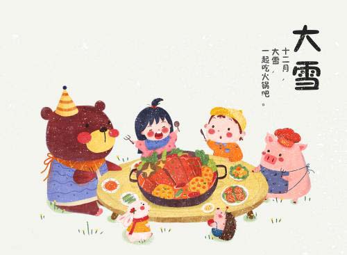 此時(shí)宜溫補(bǔ)助陽、補(bǔ)腎壯骨、養(yǎng)陰益精。冬季食補(bǔ)應(yīng)供給富含蛋白質(zhì)、維生素和易于消化的食物。大雪節(jié)氣前后,柑桔類水果大量上市,像南豐蜜桔、官西柚子、臍橙雪橙都是的當(dāng)家水果。適當(dāng)吃一些可以防治鼻炎,消痰止咳。大雪時(shí)北半球各地日短夜長(zhǎng),因而有農(nóng)諺“大雪小雪、煮飯不息”等說法,用以形容白晝短到了農(nóng)婦們幾乎要連著做三頓飯的程度。可常喝喝姜棗湯抗寒;吃桔子、用薄荷油防治鼻炎,消痰止咳。