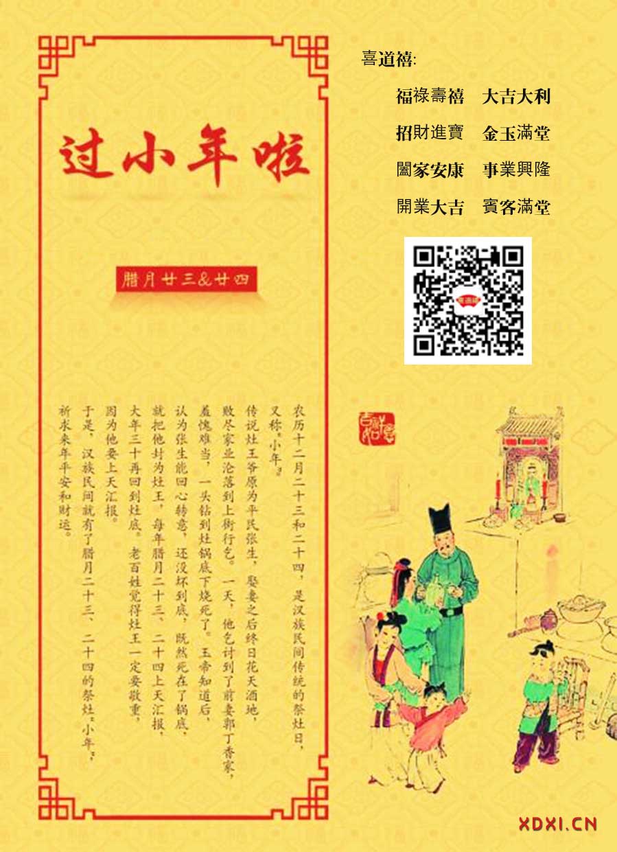 小年,多元風(fēng)俗:剪窗花、掃房屋,蒸年糕、宰年豬。沐浴理發(fā),購(gòu)備更服;盈倉(cāng)廩,年貨豐。除塵垢;揮毫福字天下祉,裁製對(duì)聯(lián)豪書禧。萬(wàn)事俱備待春節(jié),天下禧瑞眺和諧。小年者,承傳中華文化;節(jié)慶者,凝聚中華民族。焉能輕也?豈不重乎!