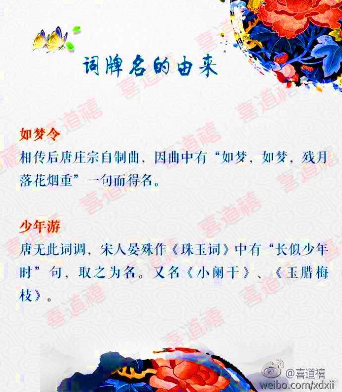 詩詞格律、詞牌賞析、詩詞趣祐,關注喜道禧官網(wǎng),東風吹雨過,潤物細無聲。我們一起來看看古代經(jīng)典詞牌名的由來吧!