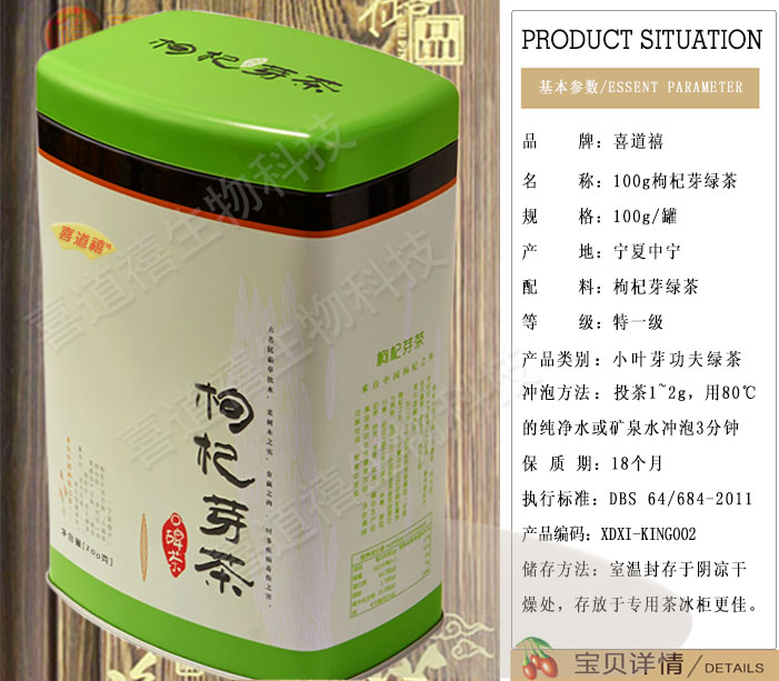 產(chǎn)品名稱:喜道禧100g枸杞芽茶
