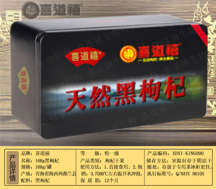 產(chǎn)品名稱:喜道禧168g天然黑枸杞